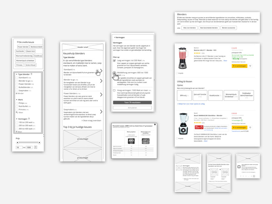 Finding the right product for your needs can be a challenge at Bol.com. Bol.com prides itself on having the most extensive assortment in the Netherlands and Belgium, which has grown to a total of 23 million unique products. When you select a category, such as televisions, you still have to sift through more than 800 products. In our exploratory UX research, users identified this as a significant challenge. They often don't really know why they select a size or type of screen technology. This decision is usually based on personal experience or advice from someone tech-savvy, which sometimes isn’t the best information. As a result, some customers make expensive mistakes that could be easily avoided.