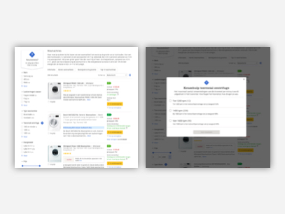 A visual designer and I created the first version of the Choice Helper, a basic flow. Under each filter that could be further explained, we added a link named "Keuzehulp," the Dutch name for Choice Assistant. When users interacted with Keuzehulp, a modal window opened with an explanation of the refinement and its values. To highlight the explanation, we created our own icon based on the diverge and converge idea of the design process. We tested this idea with a prototype, but the reception wasn’t great. Users couldn’t find the Choice Helper. However, users were very enthusiastic once they found and opened it, but overall, it wasn't as effective as we hoped.